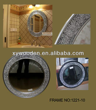 라운드 Crackle 벽 거울 수제 깨진 유리 모자이크 실버 프레임